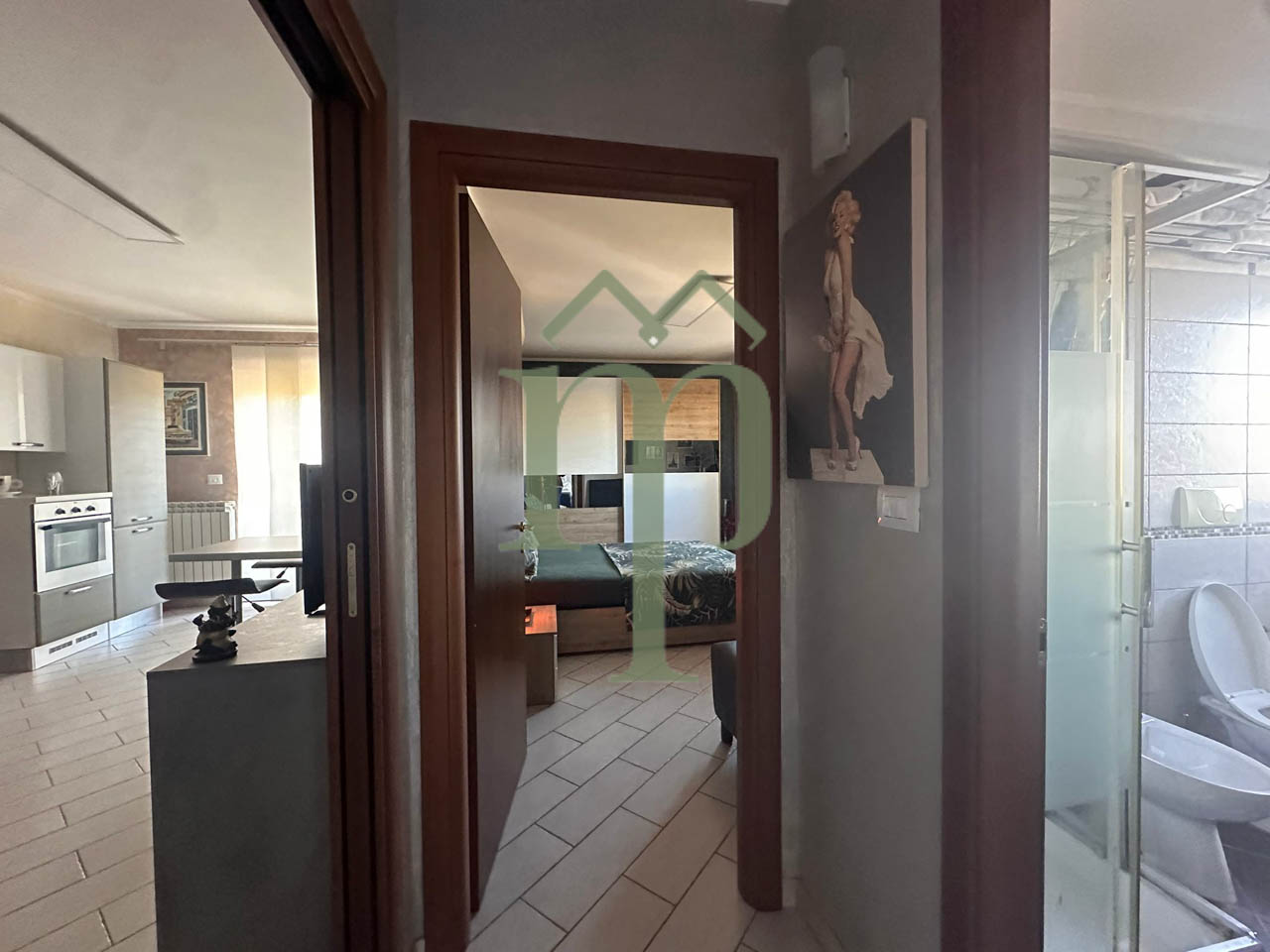 E' situato in posizione angolare quindi si espone su due lati perpendicolari ed affaccio in due strade diverse; appena entrati nella casa ci si trova nella zona living con divano e cucina a vista, questa è una zona molto luminosa grazie alla presenza di una porta finestra che affaccia sul balcone.