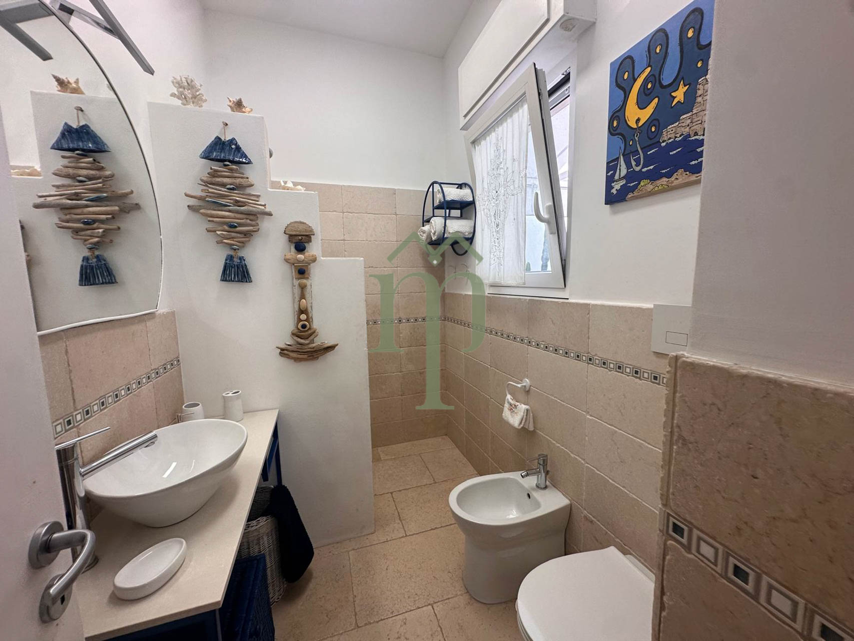 Moderno e con stile è il bagno, ristrutturato con le tonalità del blu marino, quasi a ricordare le bellissime spiagge che si trovano a soli 5 minuti di auto dal Paese.