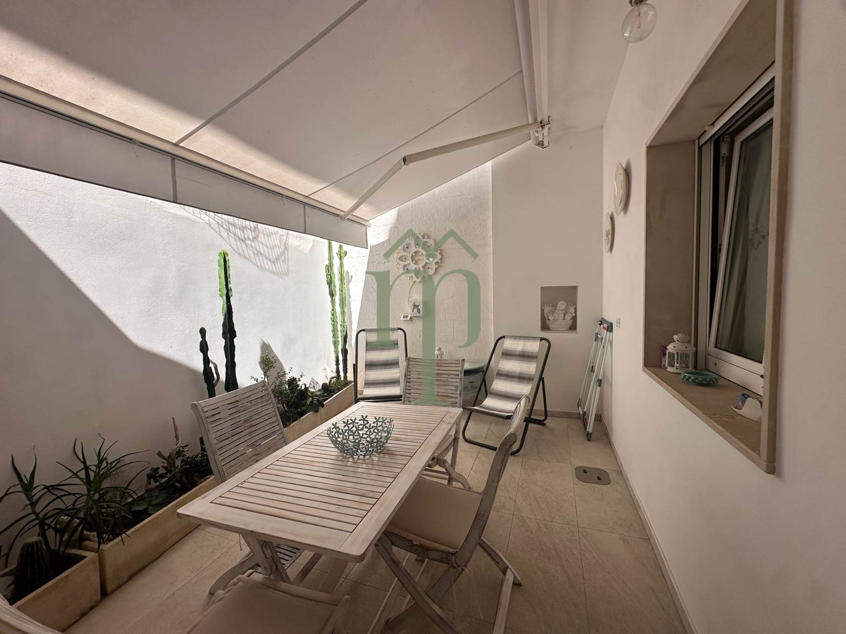 Molto utile è lo spazio esterno, attrezzato con tavolo e sedie da pranzo, per godere del relax durante i pranzi estivi, tutto questo grazie alla presenza di una grande tenda parasole che dona ombra a tutto l'ambiente.