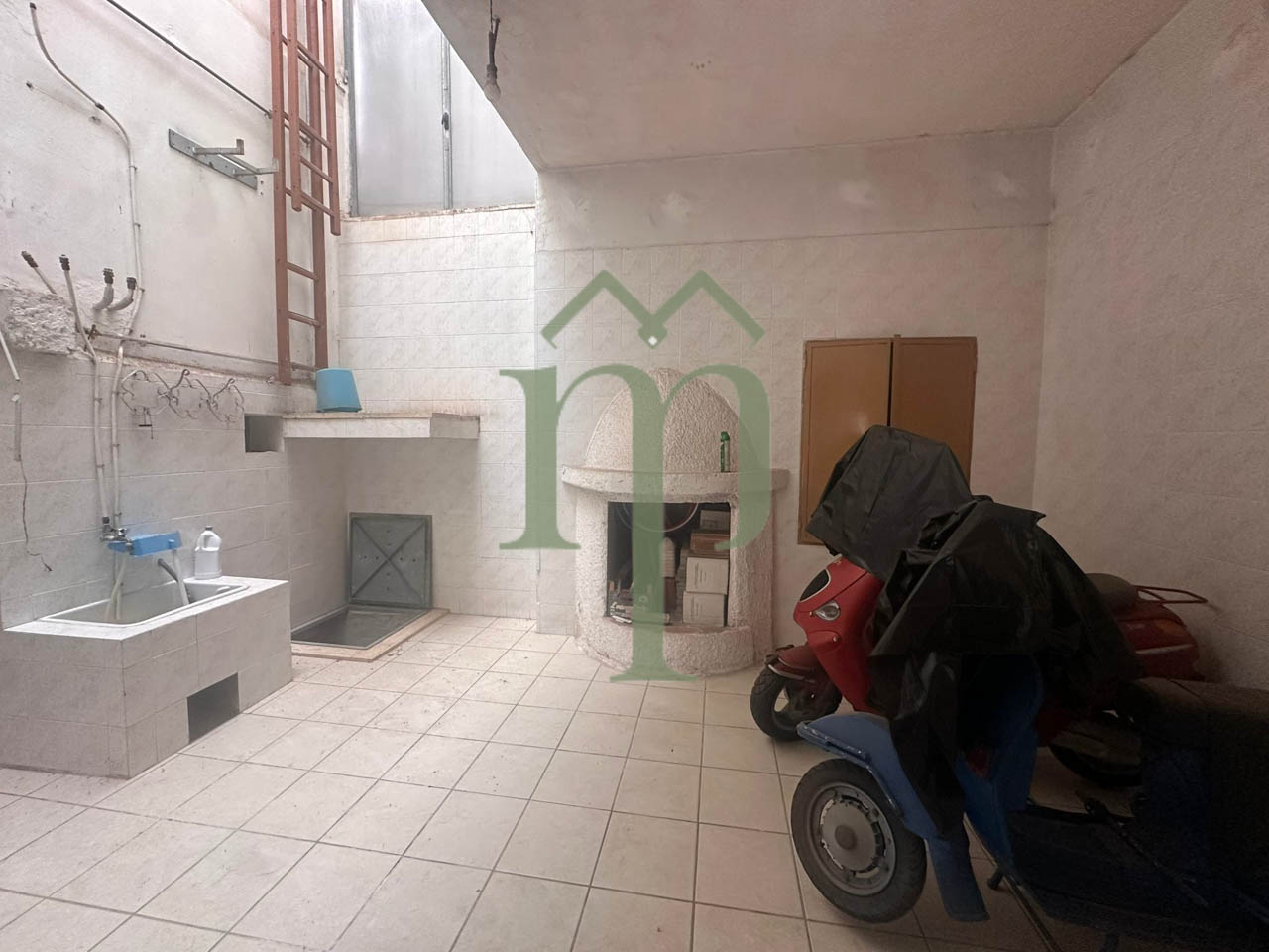 Al piano terra è presente una grande camerata che può fungere da zona living, un orto coperto con al suo interno un camino, una zona stoccaggio, una ulteriore sala con camino, anticamente la cucina. Questo piano necessita di ristrutturazioni.