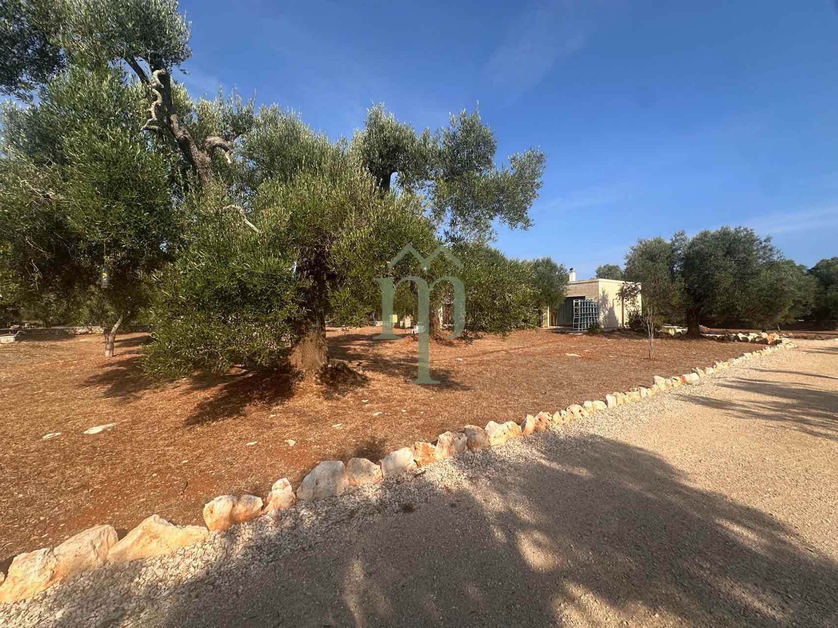 Il terreno è ben tenuto, recintato, a composizione uliveto e conta circa 8500mq, fornito di pozzo artesiano.